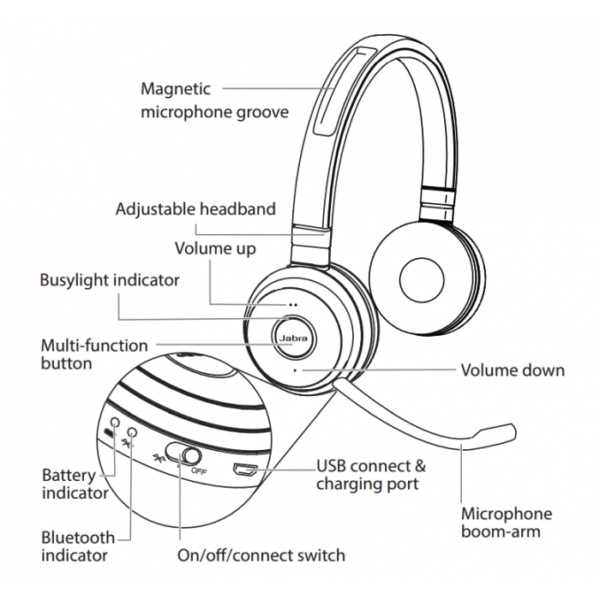 The Jabra Evolve 65 UC Stereo is a unique headset. It comes with a Bluetooth USB dongle so you can connect to your PC and also use the BT in the headset to connect directly to a mobile or tablet. Available in mono, stereo and Skype for Business versions, this is the stereo version without Skype for Business.